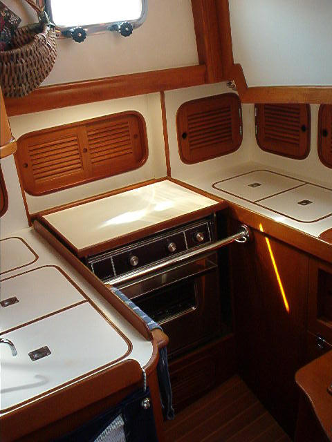At 33'9" overall, Carina is small by world cruising boat standards. However, while larger boats may be more commodious and accommodate more toys, they are not necessarily more seaworthy or comfortable. Carina has more storage than many 40+ boats because she is built to cruise. She also has a roomy cockpit protected by a large hard top dodger and bimini, important for passage-making.