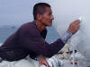 Jhonny Gonsalez, a local, cheerful and hardworking guy, puts a final coat of wax on Carina's hull. |