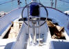 A concern we had were the rusting aft chainplates which were firmly and deeply set into hull. We damaged the gelcoat while removing them; this was irrelevent since we were painting this surface anyway. |