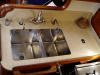 Wood surrounding our deep galley sinks was difficult to maintain. We also had issues with failing non-standard drains. See next photo for our solution.... |