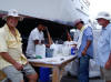 Non skid areas were ready for paint on May 26, 2007. Ed and Philip watch Orlando and Jhonny mix. |