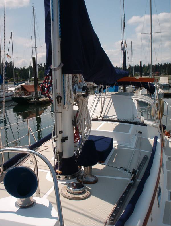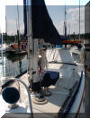 Once back in her slip, cleaning Carina became the priority. Weeks of tracked yard dirt, papermill and diesel residue and Lombardy poplar pollen were ground into every crevice. She's now in her home slip and we're beginning the hard task of final upgrades and provisioning before casting off...sometime on or about August 4, 2003.