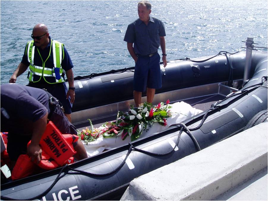 With the help of the Samoan Red Cross and her newly found Samoan family, Joan was able to get approval for Dan to be buried at sea. |