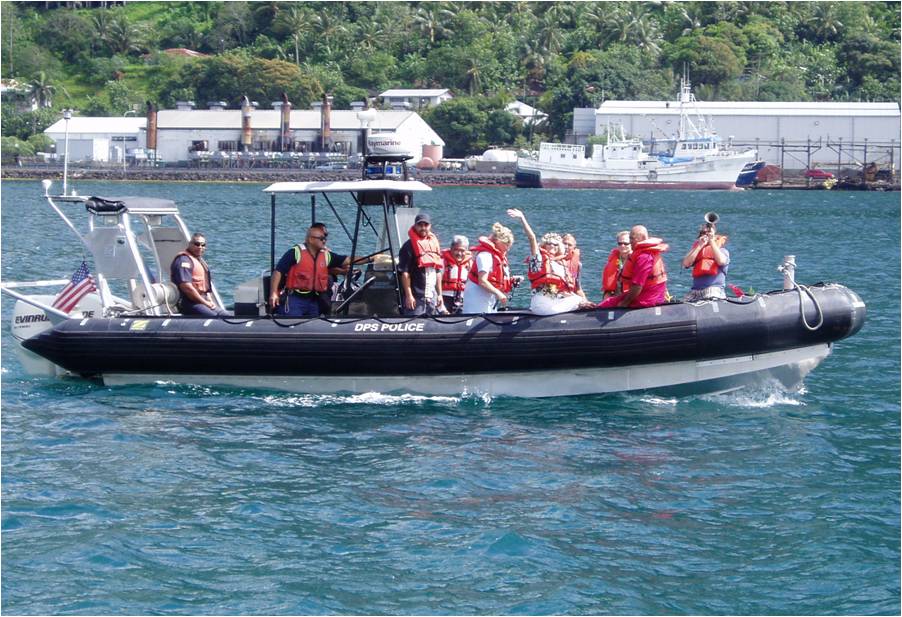 Cruiser Dan Olszewski was tragically lost in the tsunami of Sept. 29, 2009 in Pago Pago. Through this tragedy Joan learned of a family connection to Samoa. This is High Chief Lili'o who is married to Joan's cousin. |