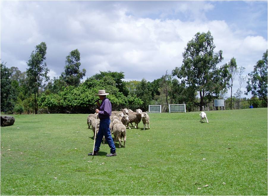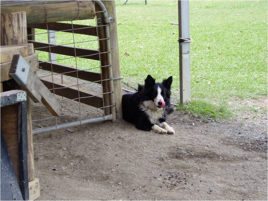 These amazing creatures swiftly managed these skittish, just out of the bush, sheep through a gate and twice up a ramp and over a bridge. These same dogs could manage well over 1000 sheep and make it look easy. |