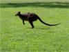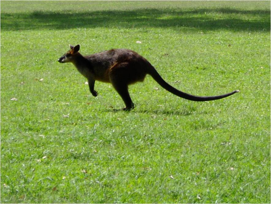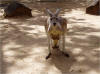 The iconic kangaroo of Australia is the Big Red. This sweet, curious Momma came up to us and sniffed as her impatient little joey kept nudging her in her pouch (visible between her front legs). |