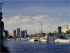 These piling moorings are on the Brisbane River at the Botanical Garden. For a modest price a boat can stay long term and take advantage of a dinghy dock and showers ashore. Nice! The only drawback is the current that can run four knots. |