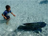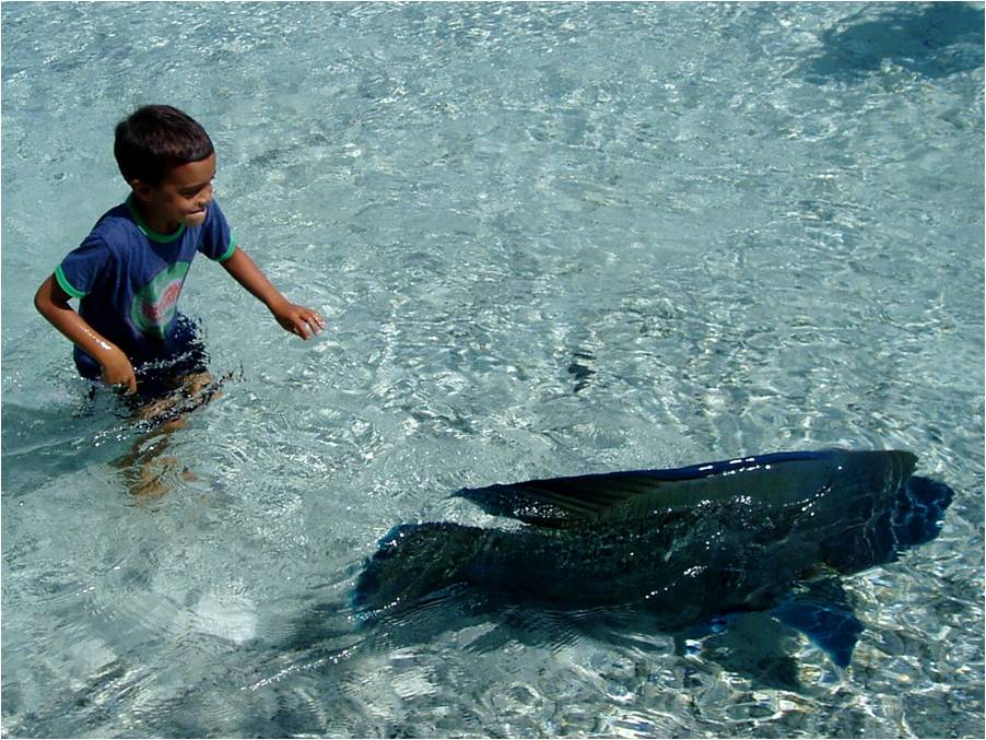 The Tetamanu Village has an enormous resident Maori Wrasse who seems to adore attention from swimmers young and old. |
