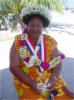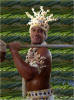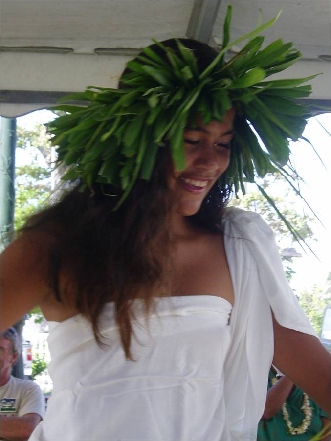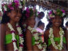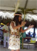 This teenage girl, dressed in a snow-white pareo and wearing a grass crown and grass belt just above her hips, performed a play which told the story of the Tuomotuan people. The dancing and acting was enthusiastically received. |