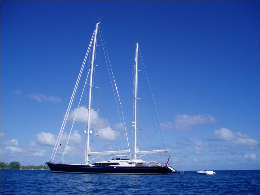 There seem to be a number of these luxury yachts plying the waters of French Polynesia. This is Drumbeat. |