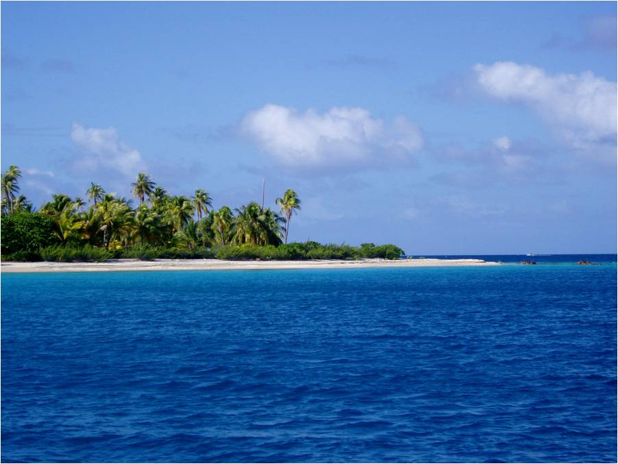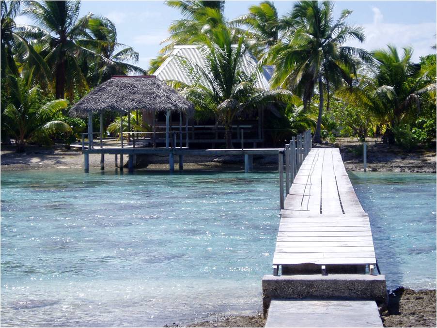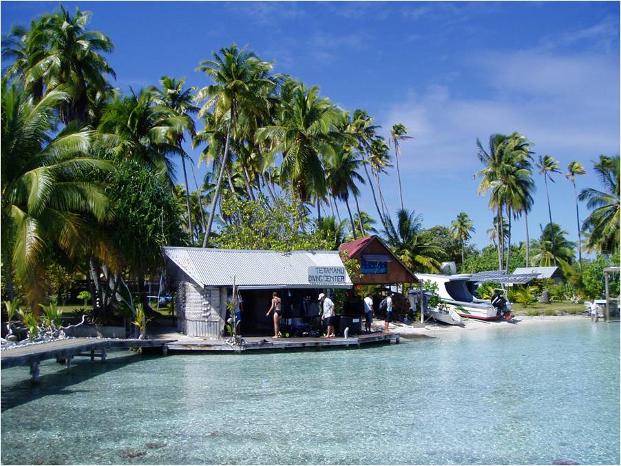At Tetamanu there are a number of tiny motu - this one is so small, it only fits a few huts. |