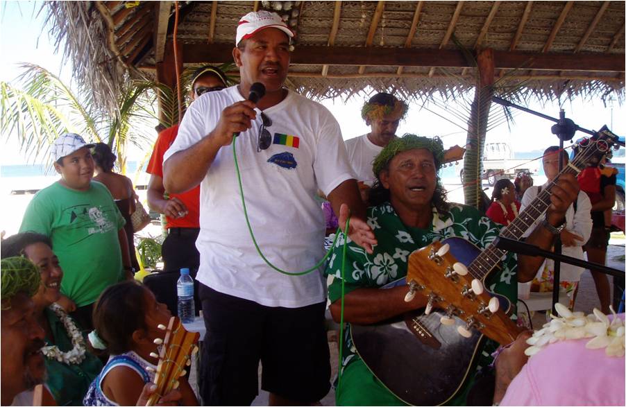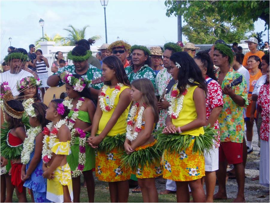The villagers in their traditional attire gathered for the mayor's opening speech during La Heiva celebrations on Bastille Day, July 14. |