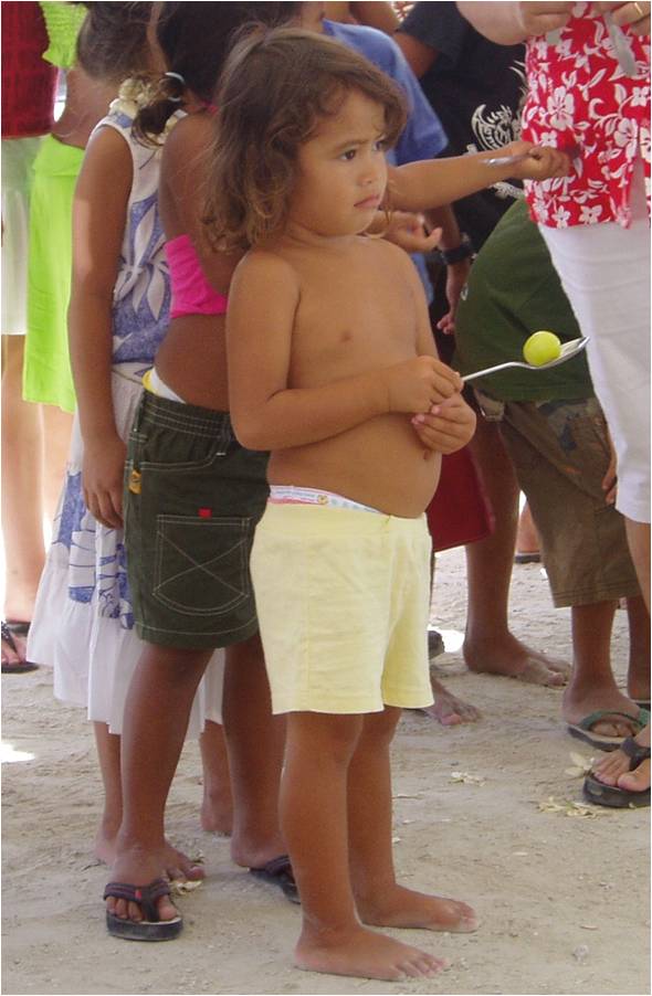 One of the competitions was an "egg" race where limes were substituted instead of eggs. Good thing too, since none of the limes stayed on the spoons very long. |