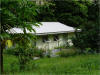 Many of the tiny homes in Fatu Hiva (and also Hiva Oa) are of this neat and compact design. We assume they are sold as a kit. (Note the large leaves of a papaya plant in the foreground left.) |