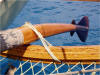 This primative rudder is all that is used to steer the ship. Two men are assigned to the rudder during the watches when the sea is heavy. The men use lines lashed to the rudder's steering end to control the rudder. |