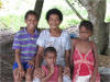 Paulini with her three grandchildren. A sweet lady, she is the sole support of her ailing husband and grandkids and survives by subsistance fishing, gardening and selling her tapa cloths made of mangrove bark. |