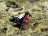 These amazing-looking small crabs scurry into their holes as you approach. But if you sit quietly and wait with your camera, they will reappear and go about their crabby business. Note the eyes sticking up on the end of the stalks. |
