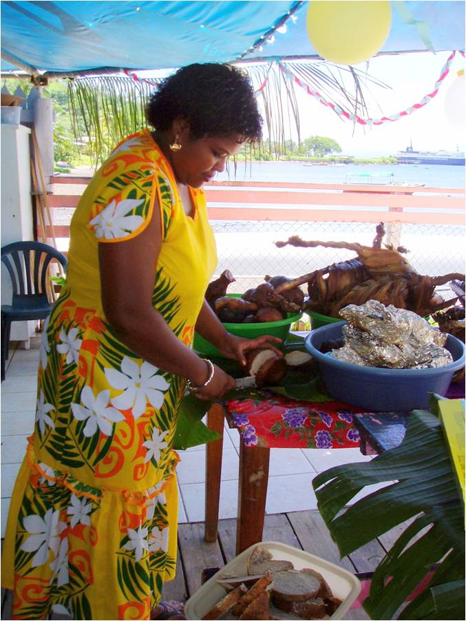 After the lovo was disassembled, taro and cassava were sliced and ... |