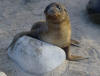 This very young sea lion pup on the beach at Wreck Bay showed a baby's inquisitiveness while his mom slept with one eye open watching us. |