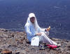 Joseph our guide to Sierra Negra volcano eats his lunch at the edge of the caldera. |