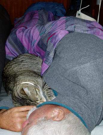 The windward passage to the Galápagos kept the crew of Carina busy constantly; here Jake and Philip enjoy a much needed offwatch nap while underway. |