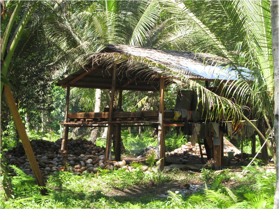 Harvesting copra is hard, backbreaking work and this was one shelter they used to rest and sleep. |