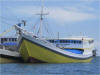 costs 3,000 rupiah, about 27 cents US, and will take you the mile or two across the bay to Tobelo. The wide amas make embarking and disembarking on a sailboat "interesting". |