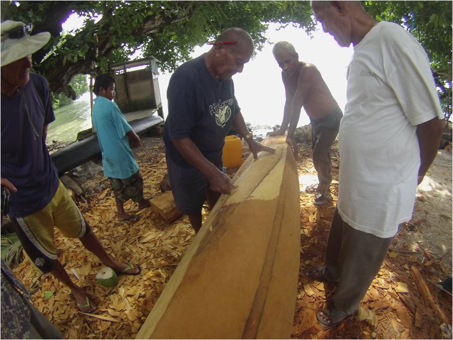There is a program in Lekinioch that brings young men together with elder masters - in this case Otto - to teach the construction of dugout canoes; wafatel in the local language. |
