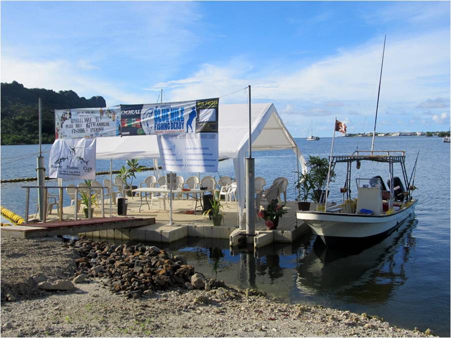 were colored coded. Pohnpei's commercial wharf, a mile away, forms the backdrop. |