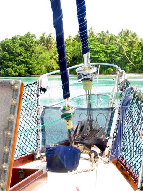 readying for departure from Pohnpei with supplies purchased for Backbeat, holed at Woleai |