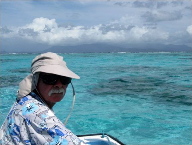 Kelly (shown) and his crew Glen departed Pohnpei during typhoon season, confident the fate of Kelly's last boat wouldn't haunt them. Instead a typhoon caught them at Woleai and they were shipwrecked. |