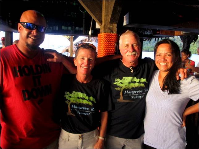 the sad time to leave Pohnpei. But leave we must. Our last evening ashore was spent with many friends at Mangrove Bay. We will miss Pohnpei, particularly the good Kumer and Antonia. |