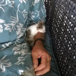 adopted a newborn kitty and named her MBB. Being so young she struggled at first but she showed her fine tabby genes and survived and grew. |