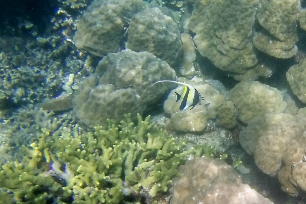 fish seemed scarce except various spp. of damselfish. This little beauty is likely a "staghorn" damselfish. |