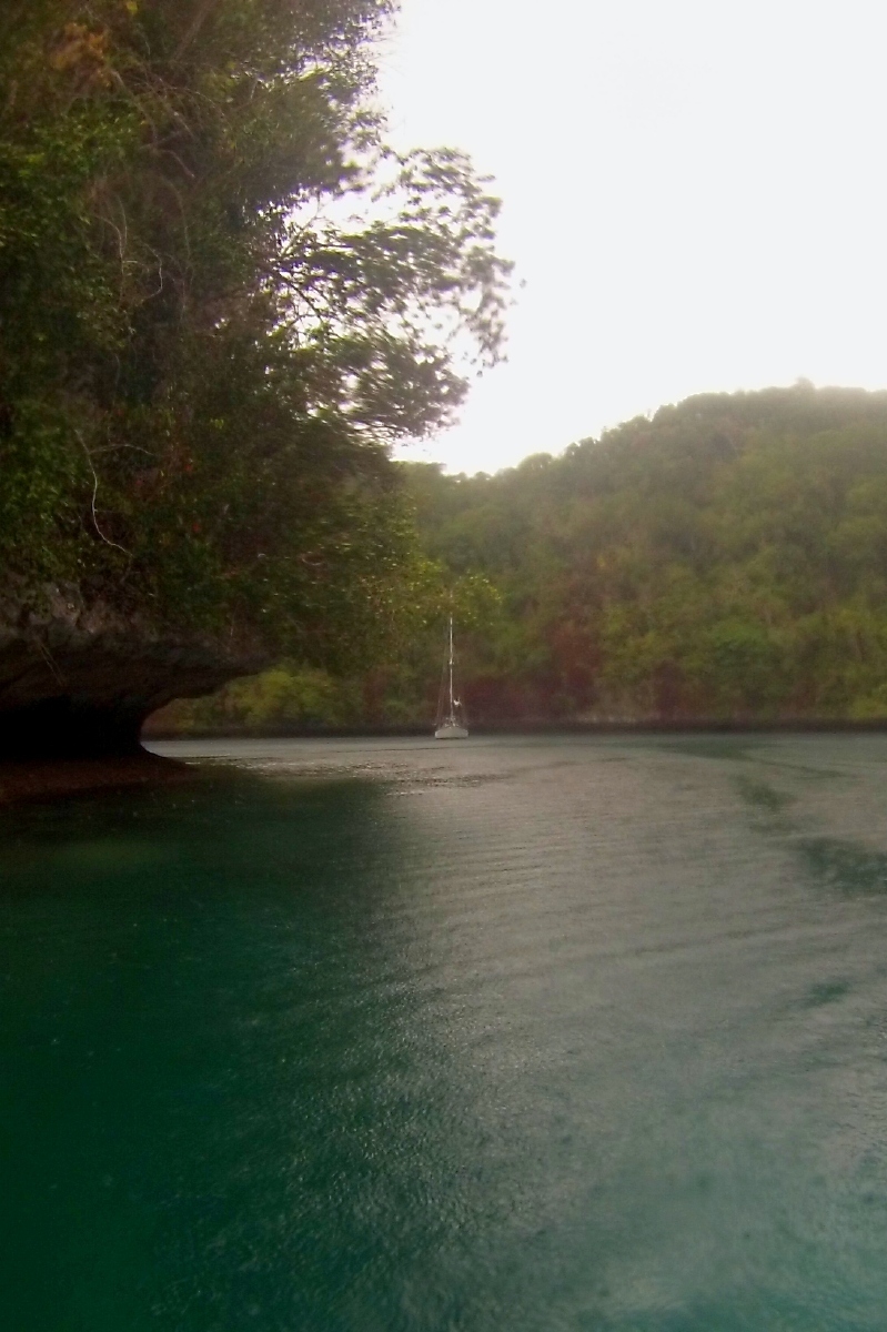 have the option of staying aboard one of the lovely liveaboard yachts. This is the Palau Siren on a rare day of actually sailing. |
