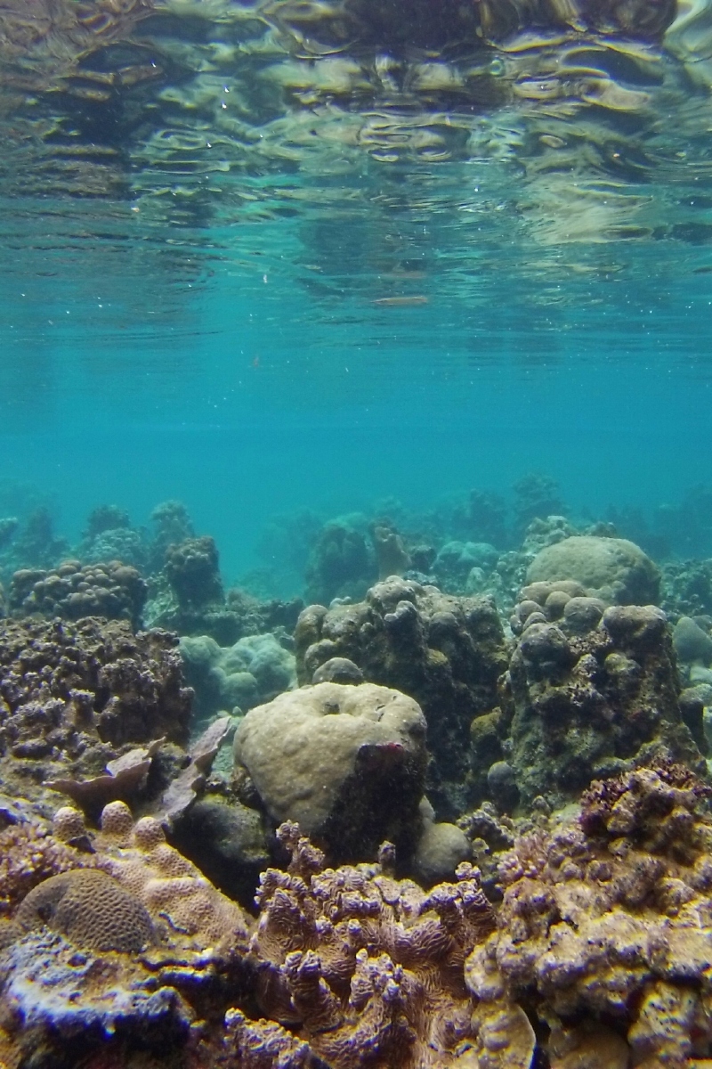 come during the day to the area to kayak and to snorkel - or to bash the coral while flailing in unfamiliar gear. This group walked all over the coral. |