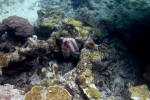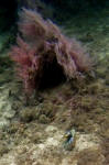 much scarier than he was...at least to us. We don't know what he preyed on, but probably the beautiful mandarinfish whose coral rubble he laid in. |