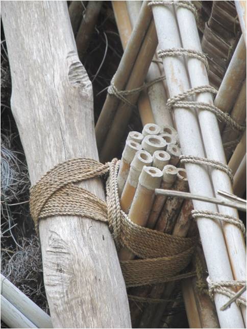made from coconut is the only "fastener" holding together this whole house. Some of the wood is betel nut, some mahogany and some coconut palm. |