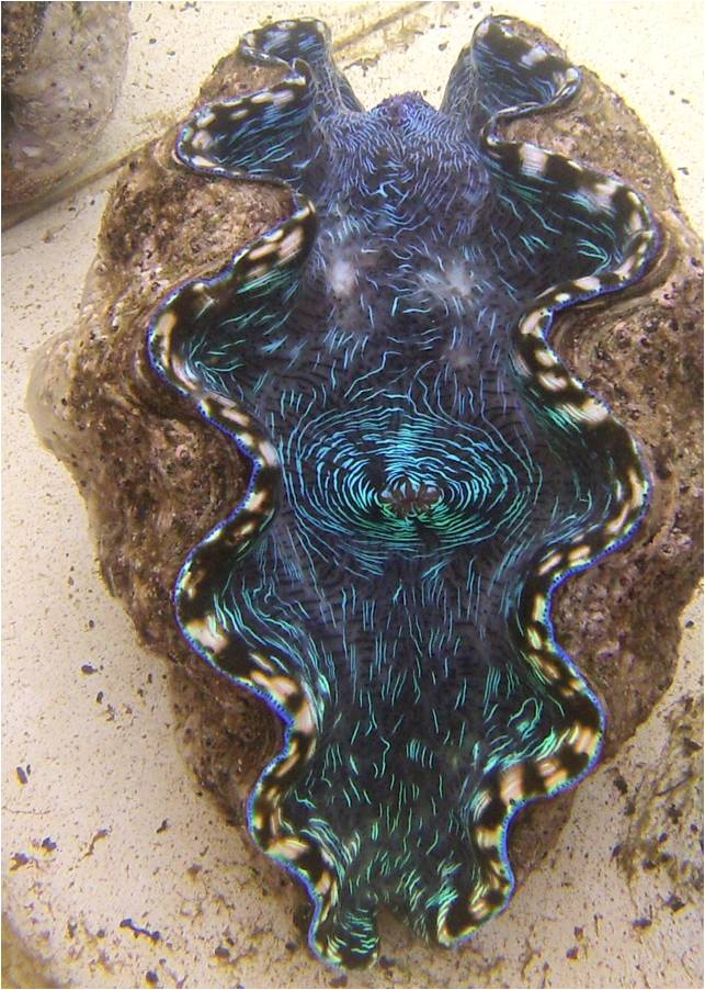 of the Pacific are magnificent. This clam from Palau and living in a giant clam hatchery in Yap was just bigger than an American football and was being used as breeding stock. |