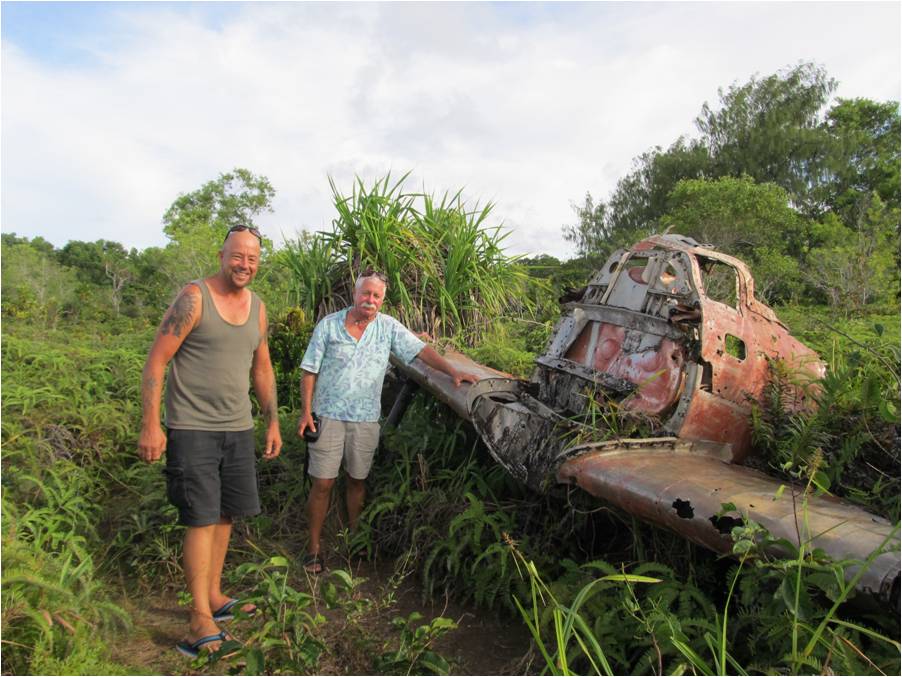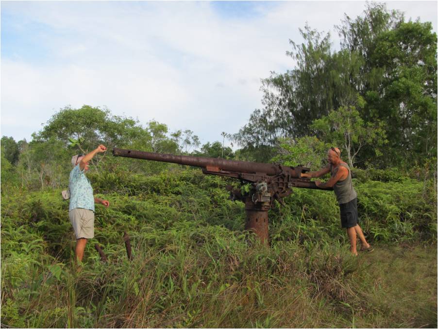 was a strategic site during WWII. This Japanese anti-aircraft gun was near the old airport. Glen and Philip were checking to see if there was a shell inside. There wasn't. |