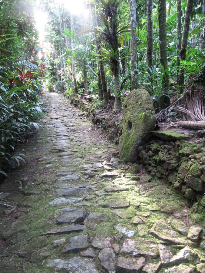 During a long day of exploring, we came upon this stone path that led to the sea and to a men's house. |