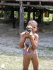 Clothing was optional for this little Wounaan boy (and for others in the village) as he proudly shows off his puppy (Alkahest photo). |