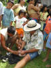 Boca del Lara's dirigente (chief), Juan, met with us and told us of his plans for his Wounaan village. Most adult villagers were 5' or less. |