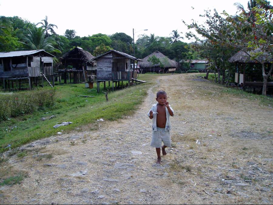 A local Wounaan boy walks down Boca del Lara's only street. |