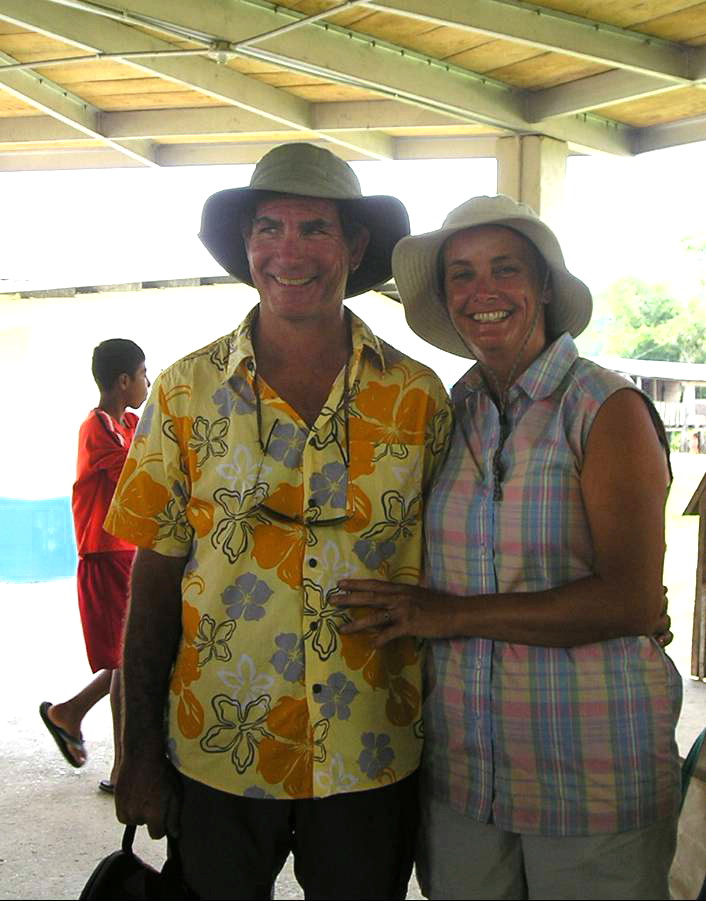 Alkahest's Jay and Danica pose under the building where artisans sold their baskets and intricate carvings. |