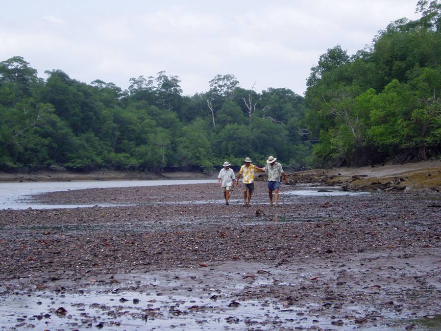 Philip, George and Jay return from walking upriver after finally locating the indigenous Wounaan village of Boca del Lara. |
