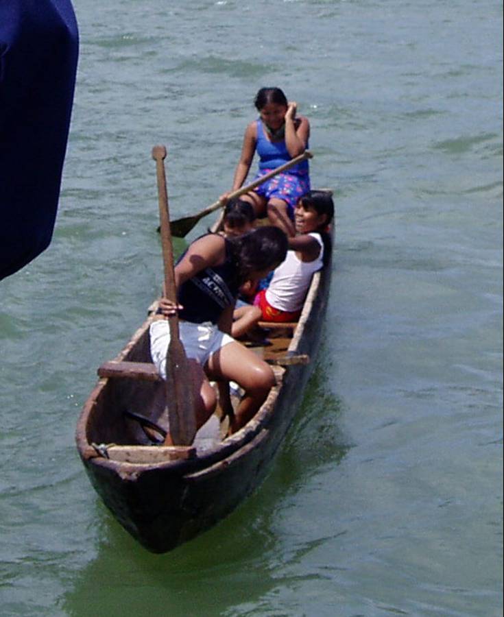 Anchoring in La Palma brings out botes filled with sellers of Darién baskets. This bote is filled with giggling teenage girls. |