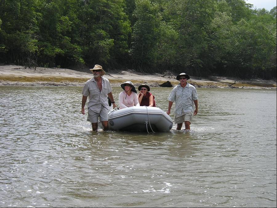 Because we searched for the indigenous Wounaan village of Boca del Lara at low tide, we were sometimes forced to tow the dinghies (Alkahest photo) |
