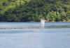 One pleasant afternoon a humpback whale joined us in the bay at Brincanco, remaining almost still for long periods as her calf stayed close, presumably nursing. Around sunset and with a gentle roll, she exited the bay only to be seen far offshore breaching as if in glee. |