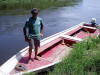 This boat propelled by three paddlers brought a woman and baby (under umbrella) to town...despite the rain shower. |